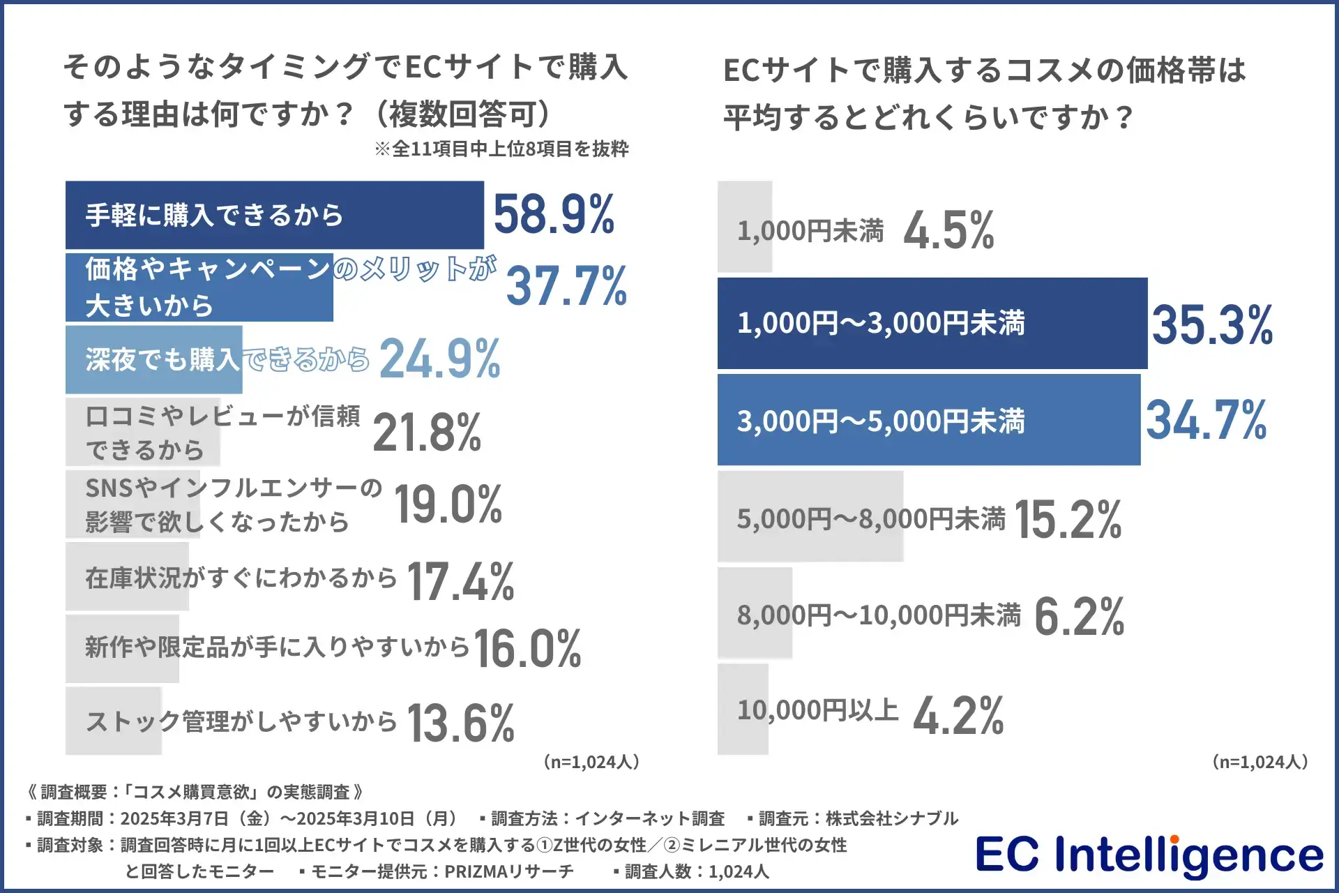 また、価格やキャンペーンのメリットが大きい、深夜でも購入できるなどの回答が上位になり、ECサイトの利便性が両世代に共通して評価されていることがわかりました。