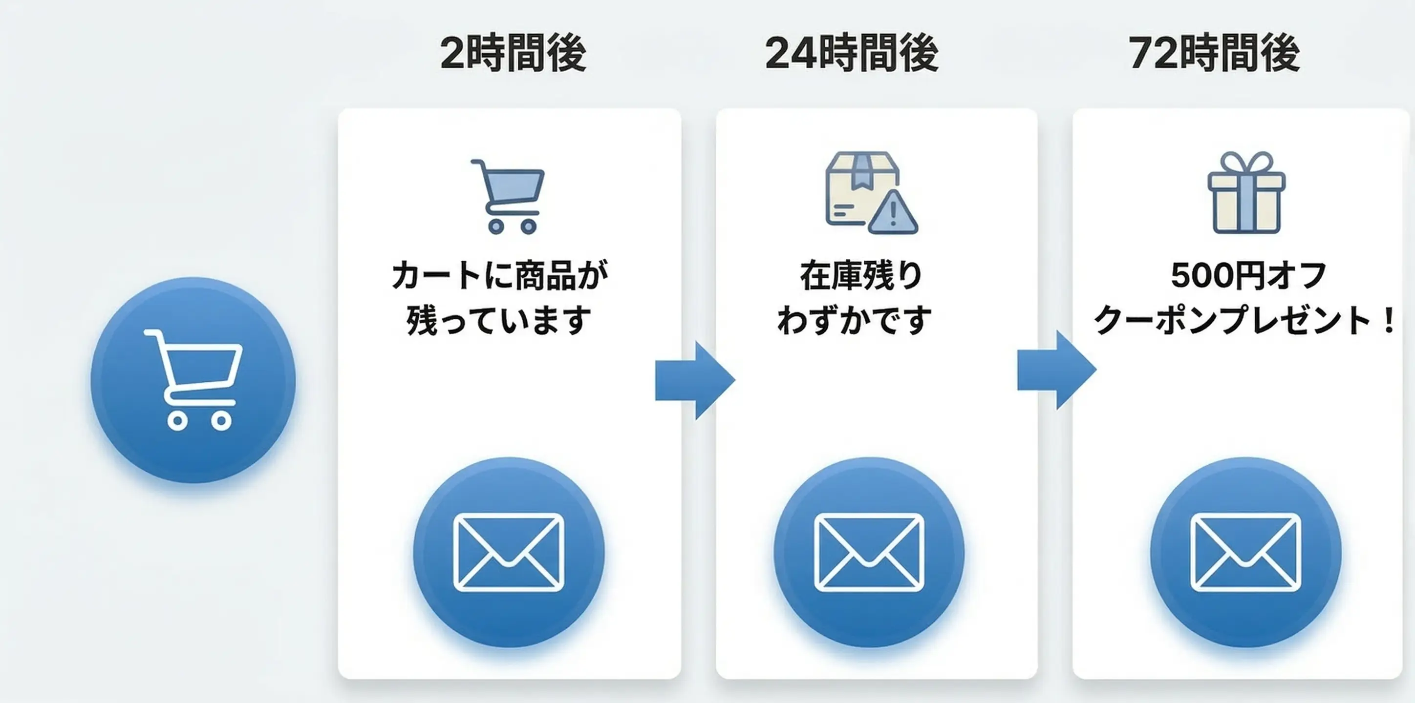 シナリオ設定例:カート落ち顧客への段階的アプローチ