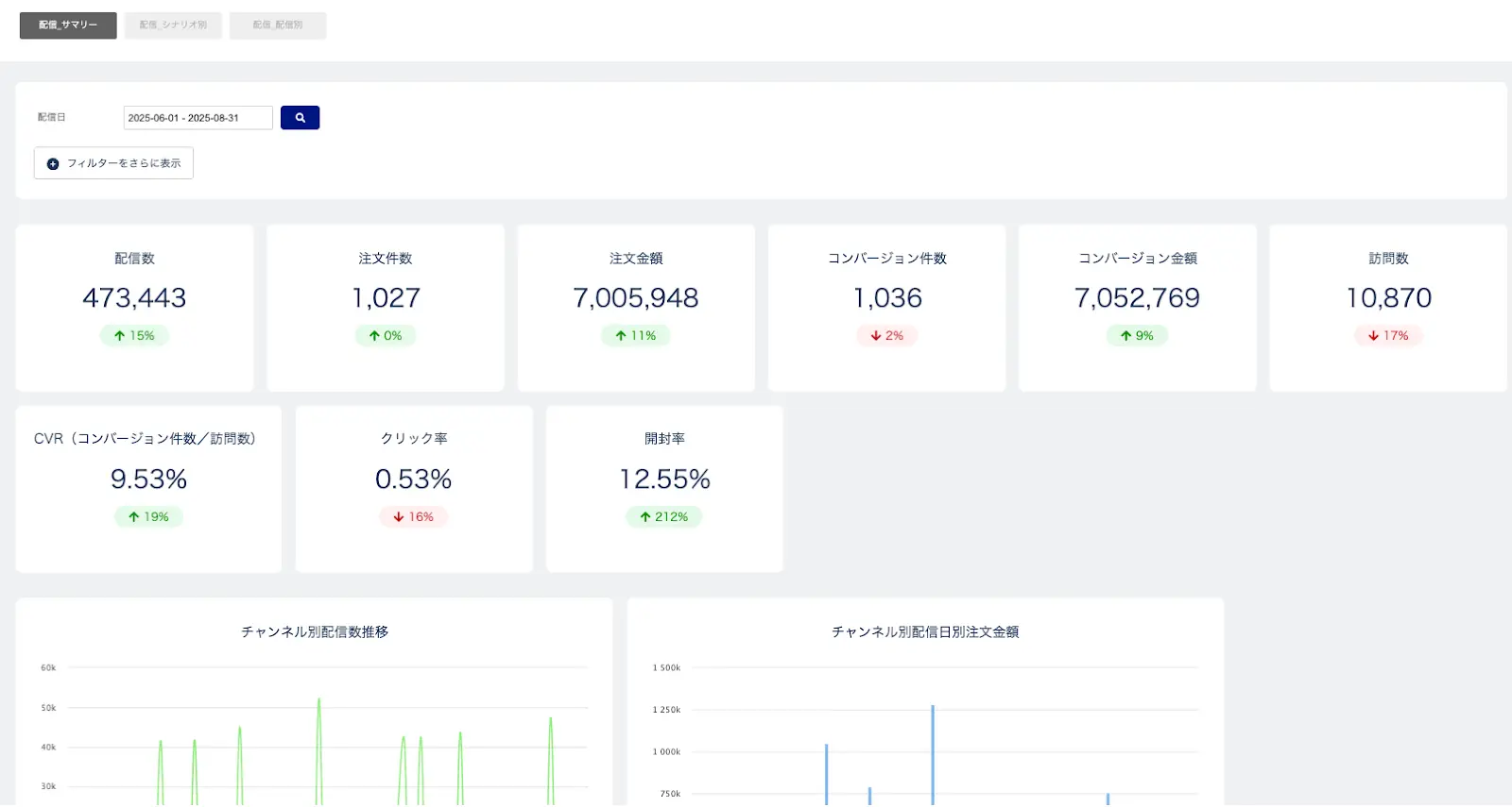 RFM分析(最終購入日・購入頻度・購入金額)を基本に、「新規顧客」「優良顧客」「休眠顧客」